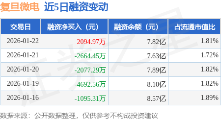 证券之星消息,1月22日,复旦微电(688385)融资买入1.15亿元,融资偿还9396.84万元,融资净买入2094.97万元,融资余额7.82亿元。