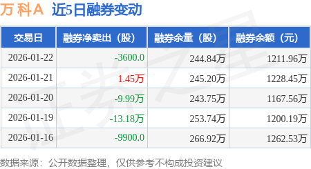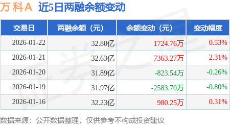 证券之星消息,1月22日,万 科A(000002)融资买入1.41亿元,融资偿还1.23亿元,融资净买入1741.26万元,融资余额32.68亿元。
