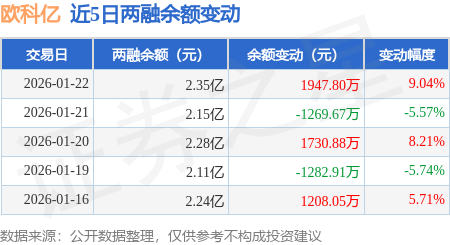 证券之星消息,1月22日,欧科亿(688308)融资买入6280.24万元,融资偿还4607.97万元,融资净买入1672.28万元,融资余额2.35亿元,近20个交易日中有11个交易日出现融资净买入。