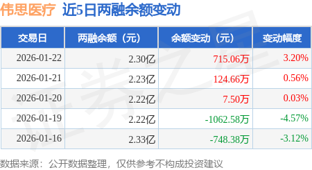 证券之星消息,1月22日,伟思医疗(688580)融资买入2230.17万元,融资偿还1421.71万元,融资净买入808.45万元,融资余额2.3亿元,近3个交易日已连续净买入累计955.96万元。