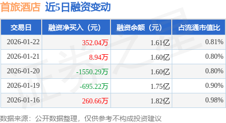证券之星消息,1月22日,首旅酒店(600258)融资买入2508.64万元,融资偿还2156.59万元,融资净买入352.04万元,融资余额1.61亿元。