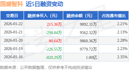 证券之星消息,1月22日,国盛智科(688558)融资买入978.72万元,融资偿还763.36万元,融资净买入215.36万元,融资余额9892.31万元。