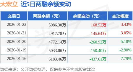 证券之星消息,1月22日,大宏立(300865)融资买入374.01万元,融资偿还205.49万元,融资净买入168.52万元,融资余额5086.3万元,近20个交易日中有12个交易日出现融资净买入。
