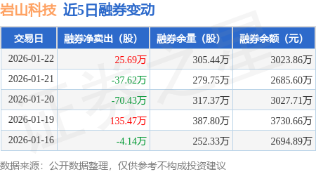 证券之星消息,1月22日,岩山科技(002195)融资买入4.63亿元,融资偿还4.62亿元,融资净买入162.0万元,融资余额22.09亿元,近20个交易日中有12个交易日出现融资净买入。