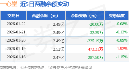 证券之星消息,1月22日,一心堂(002727)融资买入1671.25万元,融资偿还1667.62万元,融资净买入3.63万元,融资余额2.48亿元。