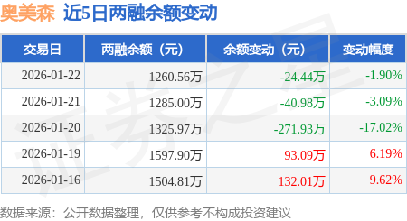 证券之星消息,1月22日,奥美森(920080)融资买入15.53万元,融资偿还39.96万元,融资净卖出24.44万元,融资余额1260.56万元,近20个交易日中有11个交易日出现融资净买入。