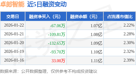 证券之星消息,1月22日,卓郎智能(600545)融资买入461.95万元,融资偿还529.01万元,融资净卖出67.06万元,融资余额1.07亿元。