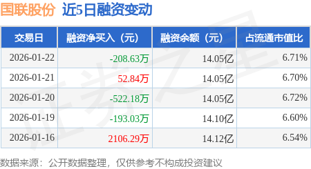证券之星消息,1月22日,国联股份(603613)融资买入4049.36万元,融资偿还4257.99万元,融资净卖出208.63万元,融资余额14.05亿元。