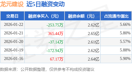 证券之星消息,1月22日,龙元建设(600491)融资买入304.21万元,融资偿还557.96万元,融资净卖出253.75万元,融资余额2.62亿元。