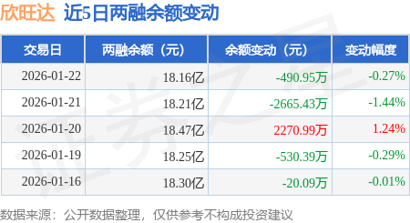 证券之星消息,1月22日,欣旺达(300207)融资买入7614.12万元,融资偿还8082.52万元,融资净卖出468.39万元,融资余额18.09亿元。