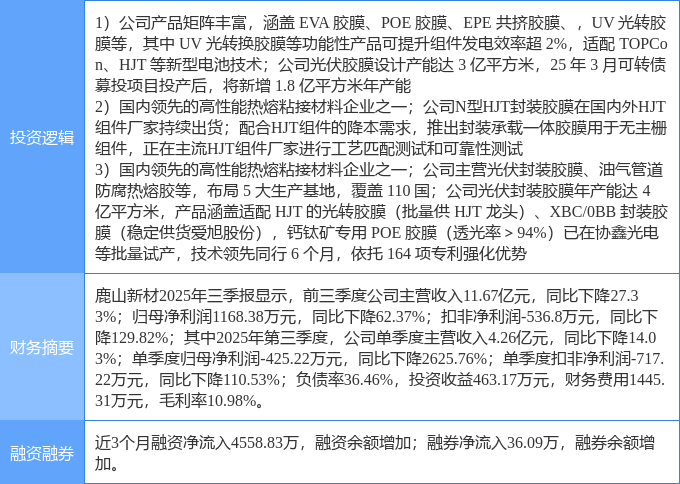 该股为异质结电池HJT,光伏,光伏胶膜概念热股,当日异质结电池HJT概念上涨7.56%,光伏概念上涨6.38%,光伏胶膜概念上涨4.18%。