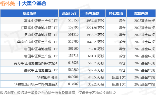 根据2025基金年报公募基金重仓股数据,重仓该股的公募基金共42家,其中持有数量最多的公募基金为嘉实基金的嘉实中证稀土产业ETF。嘉实中证稀土产业ETF目前规模为77.71亿元,最新净值2.0549(1月22日),较上一交易日上涨1.04%,近一年上涨96.96%。该公募基金现任基金经理为田光远。田光远在任的基金产品包括:嘉实中证软件服务ETF,管理时间为2021年6月4日至今,期间收益率为-7.85%;嘉实中证电池主题ETF,管理时间为2021年7月13日至今,期间收益率为-12.52%;嘉实中证稀土产业ETF联接A,管理时间为2021年8月3日至今,期间收益率为39.78%。