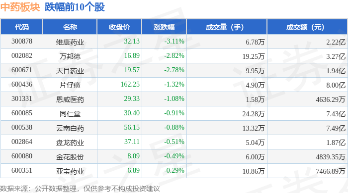 证券之星消息,1月23日中药板块较上一交易日上涨0.28%,*ST长药领涨。当日上证指数报收于4136.16,上涨0.33%。深证成指报收于14439.66,上涨0.79%。中药板块个股涨跌见下表: