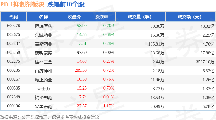 从资金流向上来看,当日PD-1抑制剂板块主力资金净流出6.29亿元,游资资金净流入1.31亿元,散户资金净流入4.99亿元。PD-1抑制剂板块个股资金流向见下表: