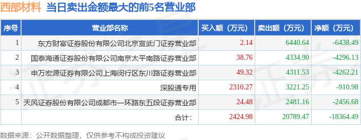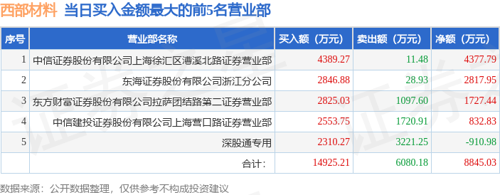 证券之星消息,沪深交易所2026年1月23日公布的交易公开信息显示,西部材料(002149)因日涨幅偏离值达到7%的前5只证券登上龙虎榜。此次是近5个交易日内第2次上榜。