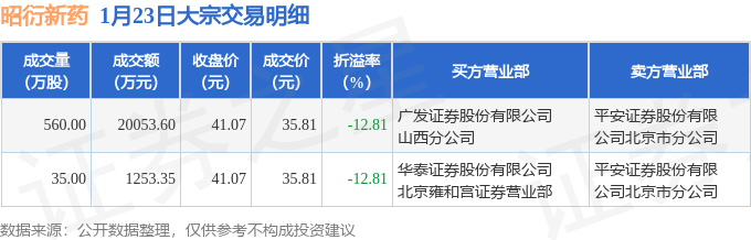 证券之星消息,1月23日昭衍新药发生大宗交易,交易数据如下: