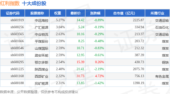 红利指数(000015)十大成份股详情如下: