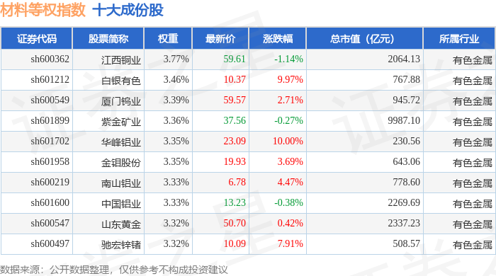 材料等权(000071)指数十大成份股详情如下: