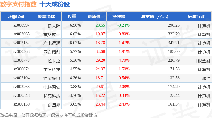 资金流向方面,数字支付(980113)指数成份股当日主力资金净流出合计13.39亿元,游资资金净流入合计4897.02万元,散户资金净流入合计12.67亿元。成份股资金流向详情见下表: