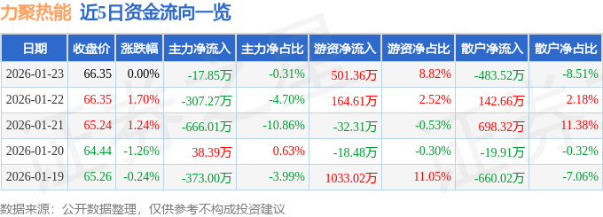 证券之星消息,截至2026年1月23日收盘,力聚热能(603391)报收于66.35元,上涨0.0%,换手率3.78%,成交量8607.0手,成交额5682.25万元。