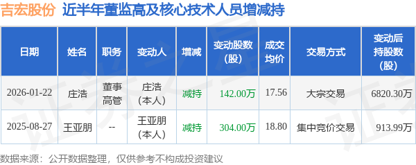 吉宏股份近半年内的董监高及核心技术人员增减持详情如下: