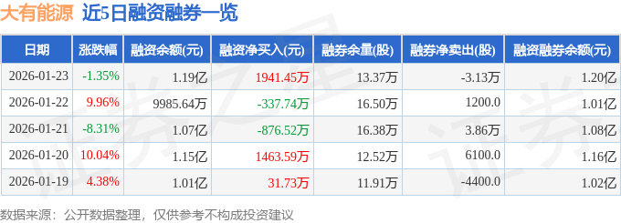 证券之星消息,截至2026年1月23日收盘,大有能源(600403)报收于7.3元,下跌1.35%,换手率5.16%,成交量123.45万手,成交额9.14亿元。