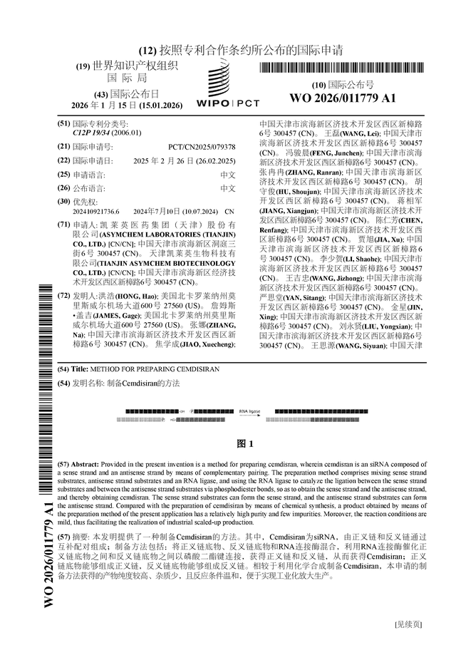 证券之星消息,根据企查查数据显示凯莱英(002821)公布了一项国际专利申请,专利名为“制备Cemdisiran的方法”,专利申请号为PCT/CN2025/079378,国际公布日为2026年1月15日。