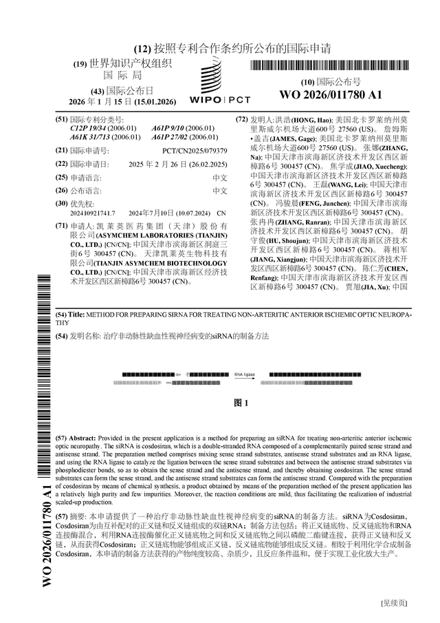 证券之星消息,根据企查查数据显示凯莱英(002821)公布了一项国际专利申请,专利名为“治疗非动脉性缺血性视神经病变的siRNA的制备方法”,专利申请号为PCT/CN2025/079379,国际公布日为2026年1月15日。
