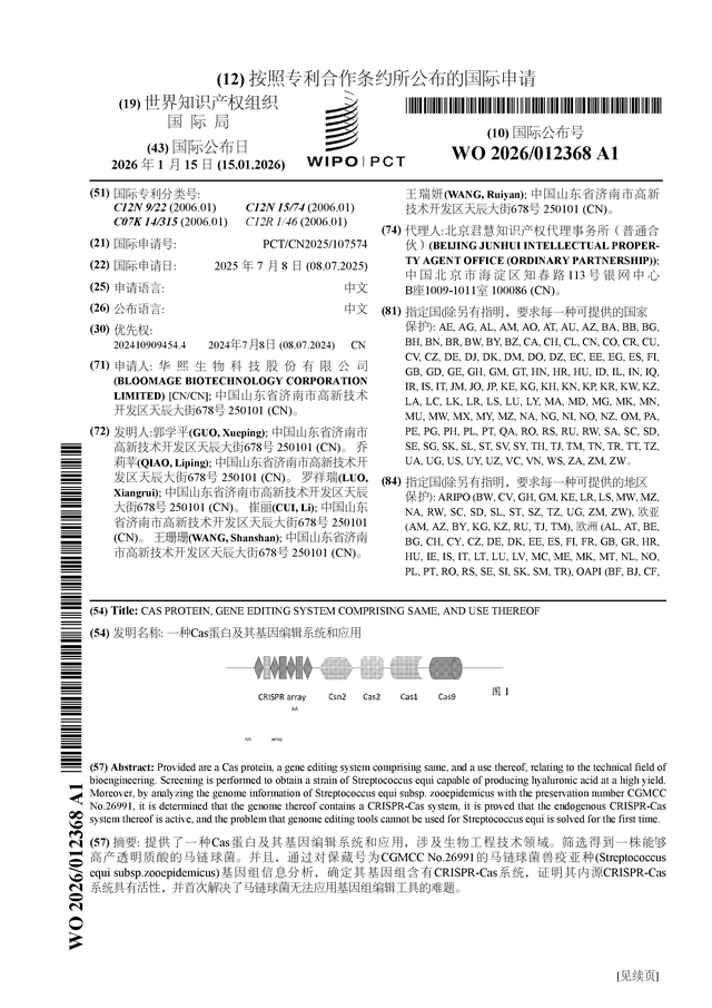 证券之星消息,根据企查查数据显示华熙生物(688363)公布了一项国际专利申请,专利名为“一种Cas蛋白及其基因编辑系统和应用”,专利申请号为PCT/CN2025/107574,国际公布日为2026年1月15日。