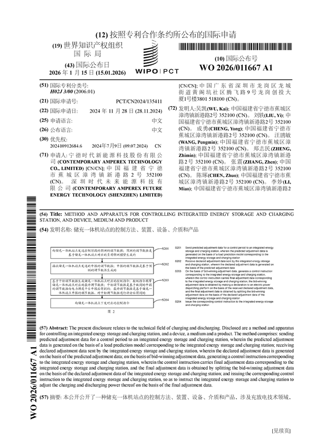 证券之星消息,根据企查查数据显示宁德时代(300750)公布了一项国际专利申请,专利名为“储充一体机站点的控制方法、装置、设备、介质和产品”,专利申请号为PCT/CN2024/135411,国际公布日为2026年1月15日。