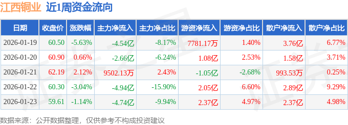 资金流向数据方面,本周江西铜业主力资金合计净流出15.94亿元,游资资金合计净流入5.23亿元,散户资金合计净流入10.71亿元。本周资金流向一览见下表: