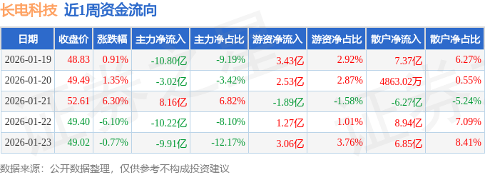 资金流向数据方面,本周长电科技主力资金合计净流出25.78亿元,游资资金合计净流入8.41亿元,散户资金合计净流入17.37亿元。本周资金流向一览见下表:
