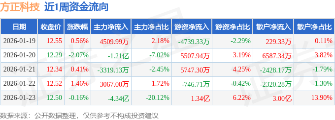 资金流向数据方面,本周方正科技主力资金合计净流出5.13亿元,游资资金合计净流入1.92亿元,散户资金合计净流入3.21亿元。本周资金流向一览见下表: