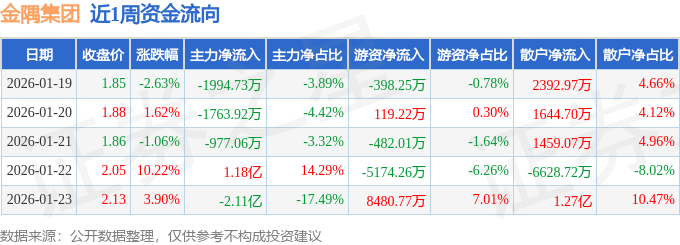 资金流向数据方面,本周金隅集团主力资金合计净流出1.41亿元,游资资金合计净流入2545.48万元,散户资金合计净流入1.15亿元。本周资金流向一览见下表: