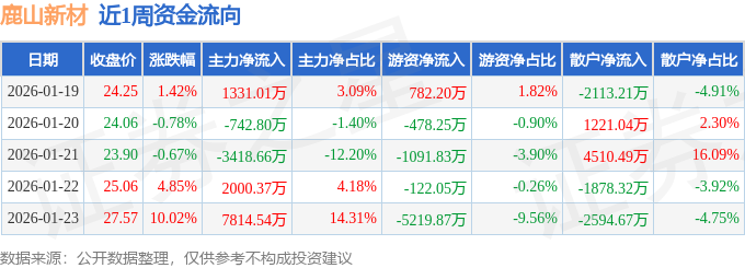 资金流向数据方面,本周鹿山新材主力资金合计净流入6984.46万元,游资资金合计净流出6129.79万元,散户资金合计净流出854.66万元。本周资金流向一览见下表: