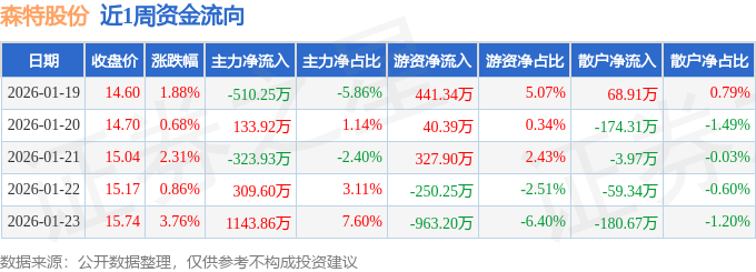 资金流向数据方面,本周森特股份主力资金合计净流入753.2万元,游资资金合计净流出403.82万元,散户资金合计净流出349.38万元。本周资金流向一览见下表: