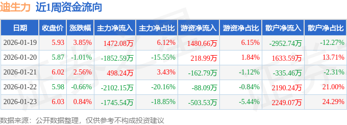 资金流向数据方面,本周迪生力主力资金合计净流出3729.95万元,游资资金合计净流入945.24万元,散户资金合计净流入2784.71万元。本周资金流向一览见下表: