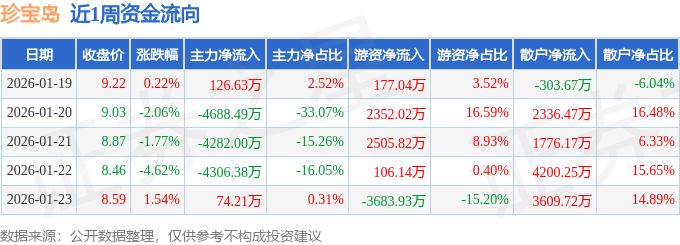 资金流向数据方面,本周珍宝岛主力资金合计净流出1.31亿元,游资资金合计净流入1457.08万元,散户资金合计净流入1.16亿元。本周资金流向一览见下表: