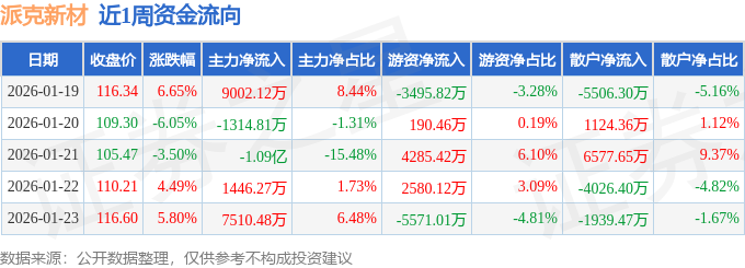 资金流向数据方面,本周派克新材主力资金合计净流入5780.98万元,游资资金合计净流出2010.83万元,散户资金合计净流出3770.16万元。本周资金流向一览见下表: