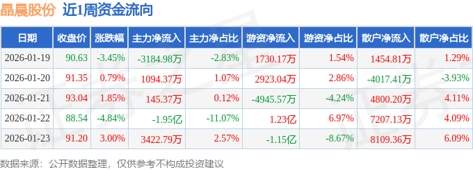 资金流向数据方面,本周晶晨股份主力资金合计净流出1.8亿元,游资资金合计净流入454.87万元,散户资金合计净流入1.76亿元。本周资金流向一览见下表: