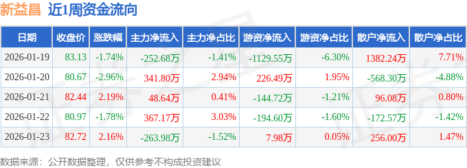 资金流向数据方面,本周新益昌主力资金合计净流入240.96万元,游资资金合计净流出1234.4万元,散户资金合计净流入993.44万元。本周资金流向一览见下表: