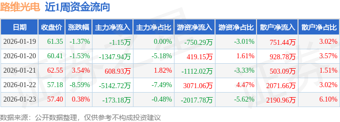 资金流向数据方面,本周路维光电主力资金合计净流出6056.06万元,游资资金合计净流出389.87万元,散户资金合计净流入6445.92万元。本周资金流向一览见下表:
