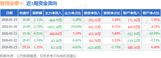 资金流向数据方面,本周智翔金泰主力资金合计净流出1154.33万元,游资资金合计净流入1116.5万元,散户资金合计净流入37.83万元。本周资金流向一览见下表: