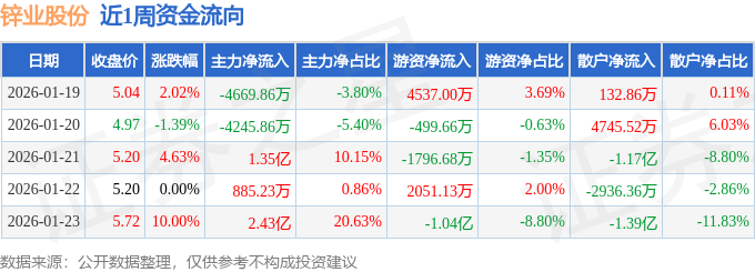 资金流向数据方面,本周锌业股份主力资金合计净流入2.97亿元,游资资金合计净流出6073.58万元,散户资金合计净流出2.37亿元。本周资金流向一览见下表: