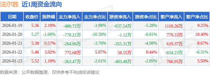 资金流向数据方面,本周法尔胜主力资金合计净流出1110.78万元,游资资金合计净流出1338.9万元,散户资金合计净流入2449.68万元。本周资金流向一览见下表: