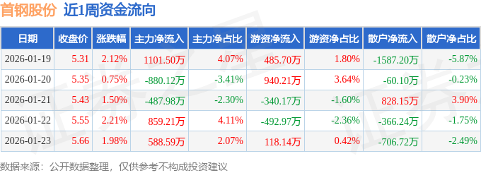 资金流向数据方面,本周首钢股份主力资金合计净流入1181.2万元,游资资金合计净流入710.91万元,散户资金合计净流出1892.11万元。本周资金流向一览见下表:
