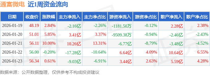 资金流向数据方面,本周通富微电主力资金合计净流出14.81亿元,游资资金合计净流入2.24亿元,散户资金合计净流入12.57亿元。本周资金流向一览见下表: