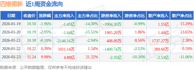 证券之星消息,截至2026年1月23日收盘,四维图新(002405)报收于11.24元,较上周的10.71元上涨4.95%。本周,四维图新1月23日盘中最高价报11.24元,股价触及近一年最高点。1月21日盘中最低价报10.08元。本周共计1次涨停收盘,无跌停收盘情况。四维图新当前最新总市值266.46亿元,在软件开发板块市值排名22/132,在两市A股市值排名821/5182。
