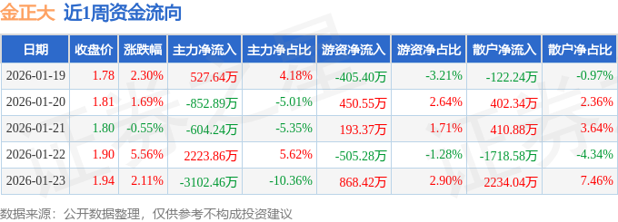 资金流向数据方面,本周金正大主力资金合计净流出1808.1万元,游资资金合计净流入601.66万元,散户资金合计净流入1206.44万元。本周资金流向一览见下表: