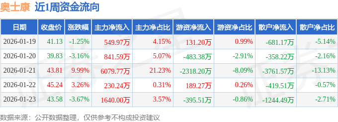 资金流向数据方面,本周奥士康主力资金合计净流入9341.57万元,游资资金合计净流出2876.62万元,散户资金合计净流出6464.95万元。本周资金流向一览见下表:
